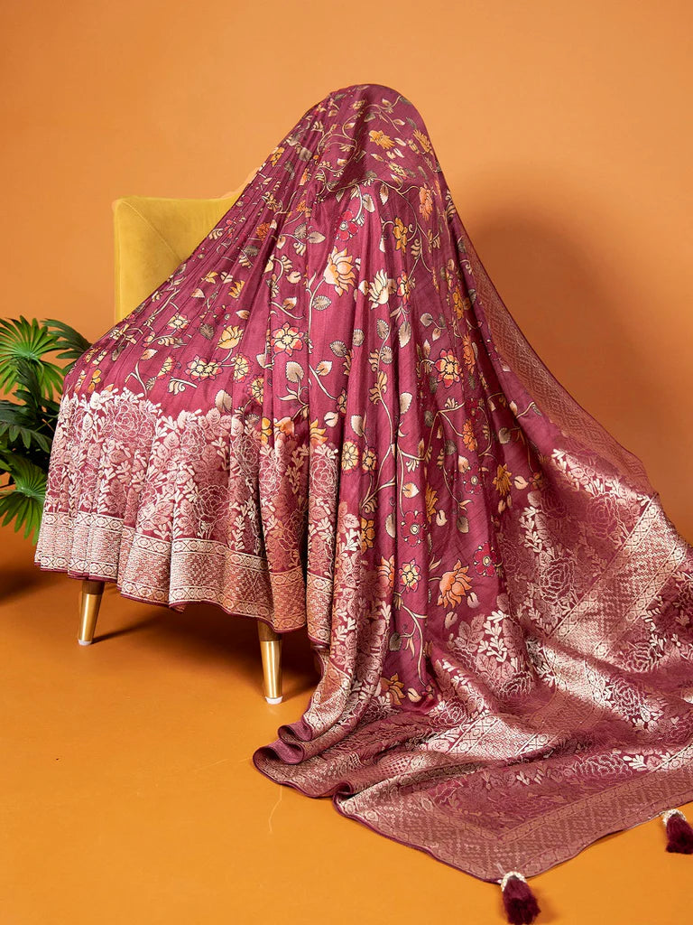 Unveil your inner grace with our captivating Viscose Kalamkari Saree Collection! This exquisite saree drapes beautifully, crafted from pure viscose fabric that offers a luxuriously soft and comfortable feel. The captivating allure lies in the stunning Kalamkari print, an ancient art form renowned for its intricate natural dye motifs.