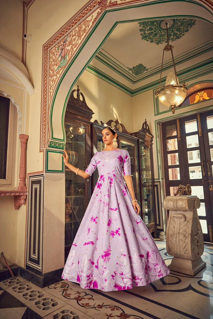 | Gown Work | Shibori Print with Sequence Embroidered work |