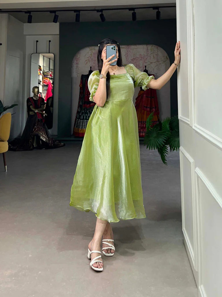 Available Options : Pista Green Dress | Peach Dress | Sea Green Dress | Lavender Dress